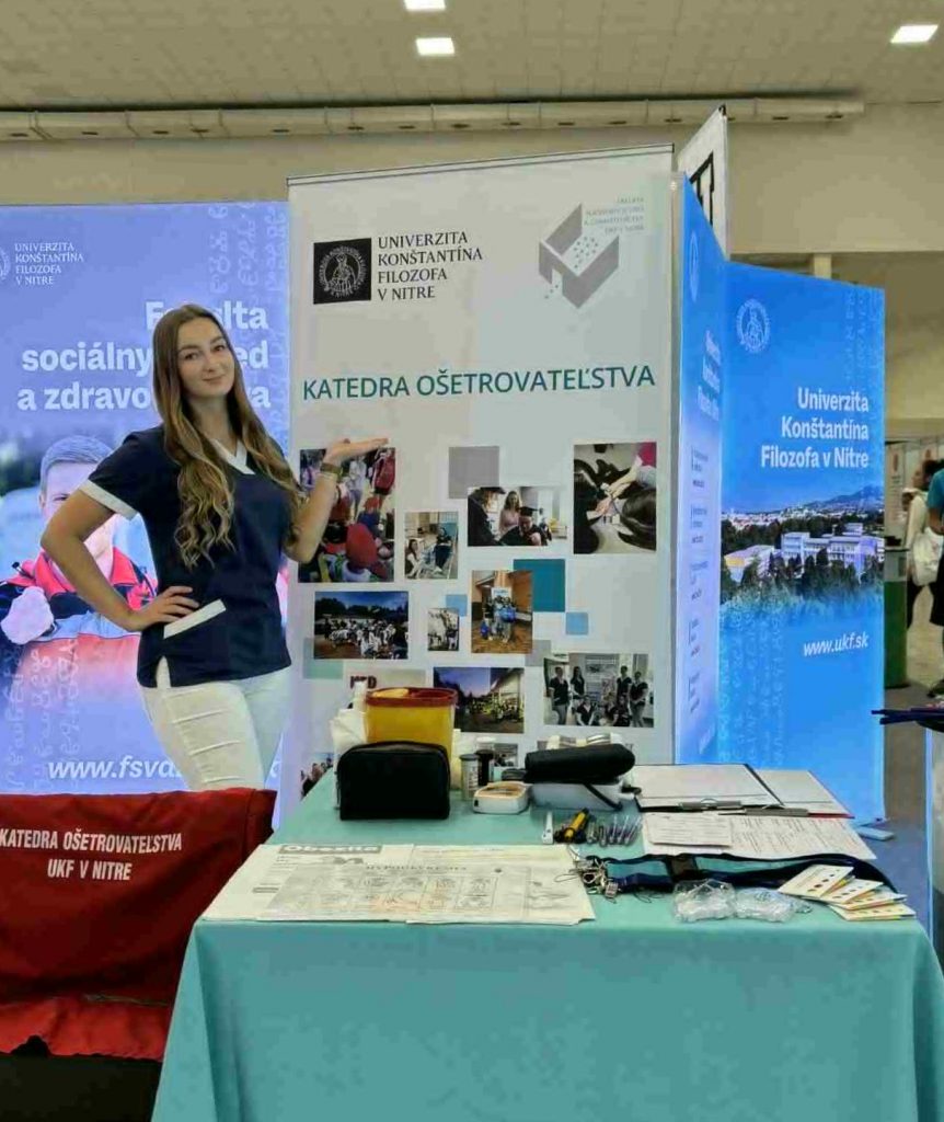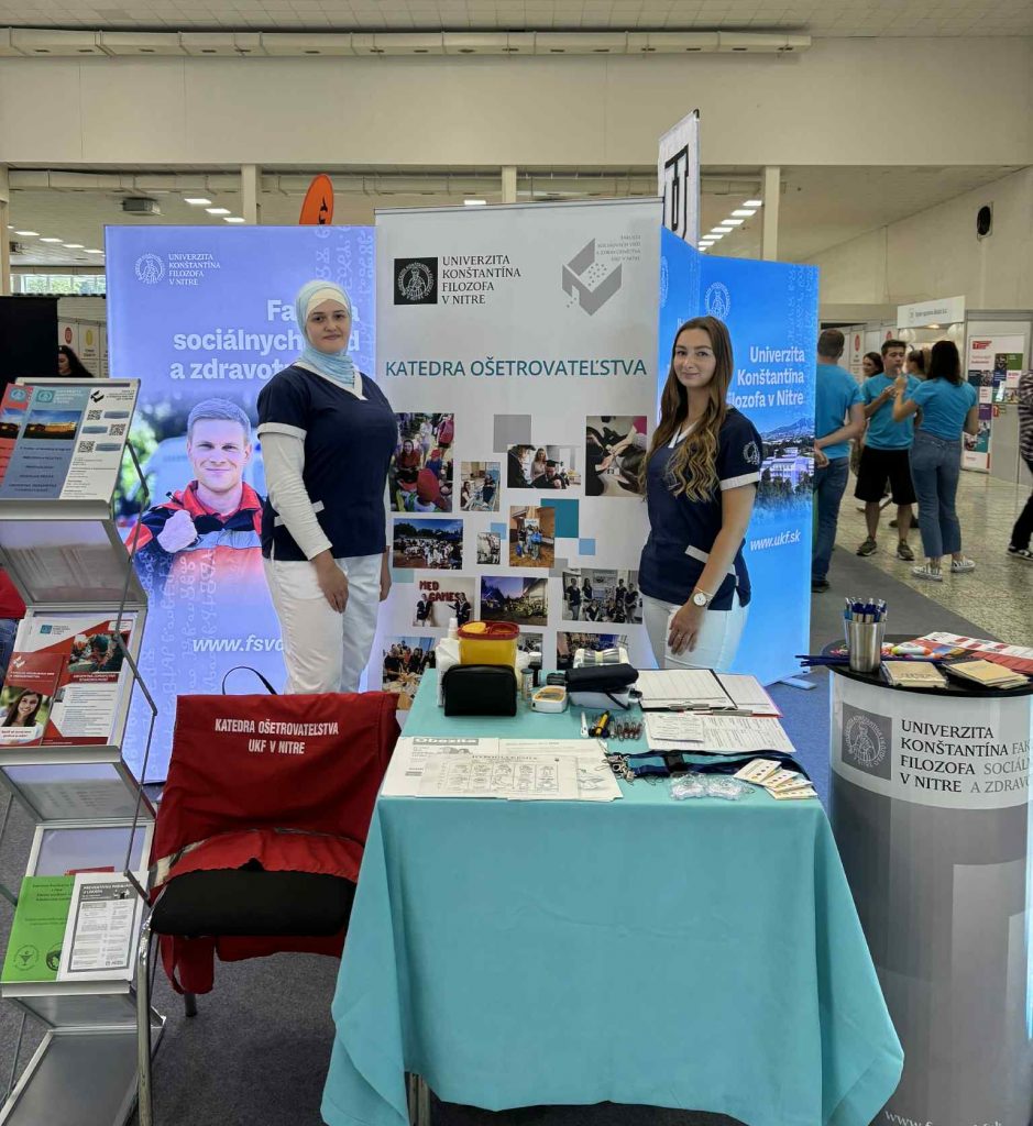Študentky Michaela Janíková a Veronika Krajčovičová z Katedry ošetrovateľstva sa v dňoch 23. – 24. septembra 2025 zúčastnili na veľtrhu vzdelávania Gaudeamus v Nitre, kde reprezentovali fakultu a študijný program ošetrovateľstvo. Podujatie im poskytlo priestor prezentovať možnosti štúdia a diskutovať so záujemcami o budúcom povolaní. Účasť na veľtrhu zároveň prispela k propagácii univerzity a k posilňovaniu jej dobrého mena v akademickej i širšej verejnosti.