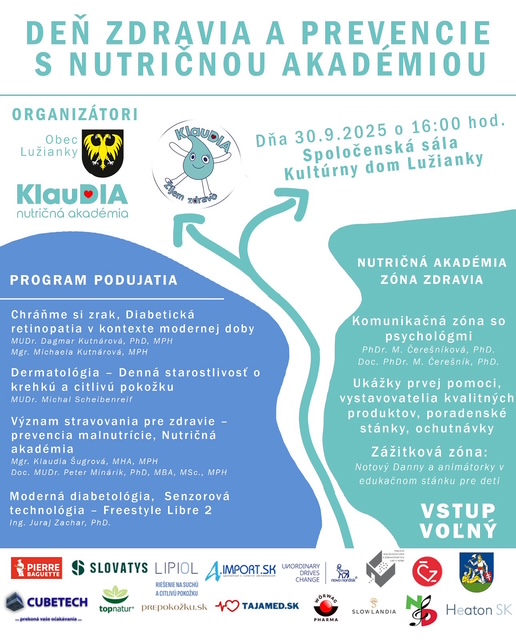 Dňa 30. septembra 2025 sa v Nitre – Lužianky uskutočnilo edukačné podujatie organizované občianskym združením KlauDIA zamerané na prevenciu a starostlivosť o zrak, s dôrazom na diabetickú retinopatiu. Program zahŕňal odborné prednášky a praktické ukážky zdravého životného štýlu a prevencie ochorení spojených s cukrovkou a bol otvorený širokej verejnosti za podpory ďalších partnerov. Podujatia sa aktívne zúčastnili aj naše študentky, Maria Ondrašek a Karin Barisová, spolu s koordinátorkou PhDr. Miroslavou Liškovou, PhD., čím mali príležitosť prehĺbiť svoje odborné znalosti a praktické skúsenosti v oblasti prevencie ochorení.