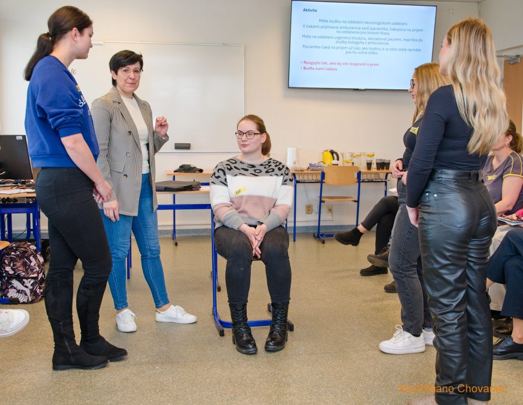 Na pôde Katedry ošetrovateľstva sa 9.12.2025 uskutočnil workshop s názvom Verbálna deeskalácia v klinickej praxi, ktorého sa zúčastnili študenti 3. ročníka. Workshop viedla certifikovaná lektorka Mgr. Stanislava Bédiová, ktorá počas workshopu študentov oboznámila s klasifikáciou agresívneho správania a jeho potenciálnymi rizikami v kontexte klinickej praxe. Prostredníctvom modelových situácií si študenti nacvičovali techniky verbálnej a neverbálnej deeskalácie napätia a agresivity s dôrazom na zachovanie profesionálneho prístupu a bezpečnosti pacientov, ale aj zdravotníckych pracovníkov. V rámci diskusie mali študenti možnosť prezentovať vlastné skúsenosti a reakcie pri kontakte s agresívnym správaním pacientov a príbuzných počas klinickej praxe.