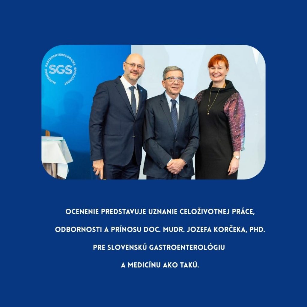 Doc. MUDr. Jozef Korček, PhD., univ. prof. bol počas odborného podujatia Gastrofórum 2026 na Štrbskom Plese ocenený Bronzovou medailou Slovenskej lekárskej spoločnosti (SLS) – ocenením Propter merita III. stupňa. Toto ocenenie je udeľované za dlhoročnú aktívnu odbornú činnosť, významný prínos pre rozvoj medicíny a budovanie odborných kontaktov. Predstavuje uznanie celoživotnej práce, odbornosti a prínosu doc. MUDr. Jozefa Korčeka, PhD. pre slovenskú gastroenterológiu a medicínu.