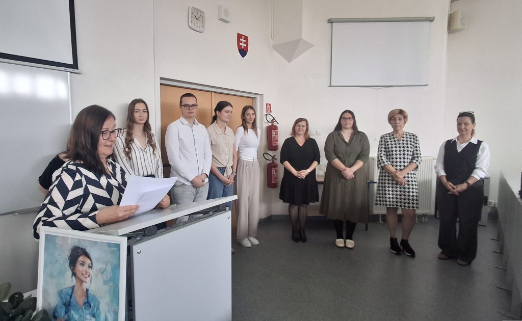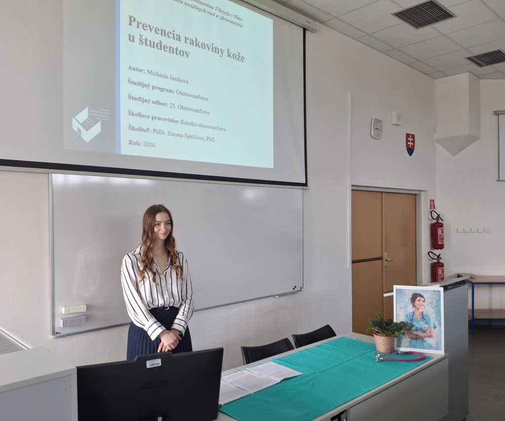 Študentská vedecká odborná konferencia 2026 v odbore Ošetrovateľstvo, sa tak ako každoročne konala 16. 4. 2026. Svoje vedecké práce prezentovali 4 študentky a jeden študent. Tak trochu symbolicky, keďže bol tento deň aj Deň Narcisov, bola prvá prezentovaná téma Prevencia rakoviny kože u študentov. Ďalšie témy boli: Vedomosti a postoje študentov ošetrovateľstva k umelej inteligencii, Pitný režim adolescentov, Úzkosť ako problém v starostlivosti o pacienta s astmou, Vzťah rizika pádu a úzkosti u neurochirurgických pacientov. Komisia v zložení doc. PhDr. Andrea Sollárová, PhD., univ. prof., PhDr. Ľubica Poledníková, PhD., PhDr. Miroslava Líšková, PhD., Veronika Baková, nemala vôbec ľahkú úlohu, nakoľko všetci študenti prezentovali skutočne kvalitné výsledky svojich výskumov, po dôkladnom rozhodovaní určila poradie nasledovne. Prvé miesto obsadila študentka Kristína Kováčová so svojou prácou o dôležitosti pitného režimu u adolescentov. Druhé miesto študentka Adriana Kubicová s prácou v ktorej riešila problematiku úzkosti ako problému  v starostlivosti o pacienta s astmou. Tretie miesto patrilo študentovi Miroslavovi Kmeťovi, ktorí skúmal aké sú vedomosti a postoje študentov ošetrovateľstva k umelej inteligencii. Srdečne blahoželáme študentkám a želáme im veľa úspechov v ďalšej bádateľskej činnosti a aj klinickej praxi.  Tešíme sa, že pri náročnosti štúdia, v ktorom musia počas troch rokov absolvovať 4600 hodín sa rozhodli zapojiť do v poradí už  22. ročníka študentskej vedeckej odbornej konferencie v ošetrovateľstve. Všetci zúčastnení dostali možnosť sa zapojiť do Medzinárodnej  študentskej vedeckej konferencie v zdravotníckych vedách, ktorú organizuje Fakulta zdravotníckych odborov Prešovskej univerzity v Prešove 23.4. 2026. Budeme im držať palce a tešíme sa z toho, že budú reprezentovať našu univerzitu na tomto medzinárodnom fóre.